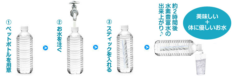 2時間後から水素が発生しますが、より濃い水素水をお飲みいただくために一晩おいて豊富な水素水をお飲み下さい。